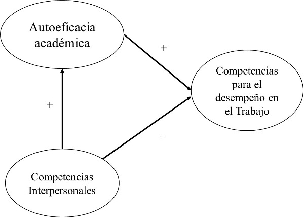 En la Figura 1 se presenta el modelo de relaciones estructurales que se propone con base en la teoría revisada sobre la medición de competencias interpersonales, autoeficacia académica y competencias para el desempeño en el trabajo con escalas de autopercepción sobre los constructos citados.