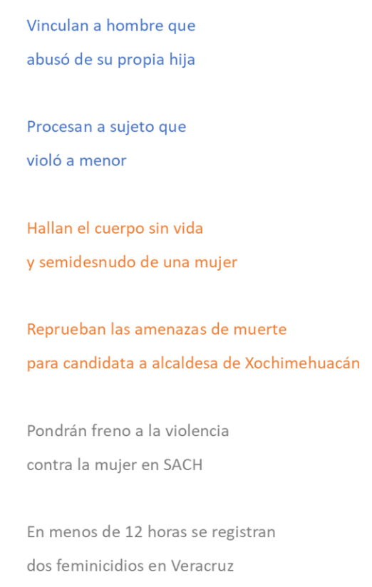 Esta investigación es parte de un proyecto que propone la creación de un sistema de información digital que contribuya a la visibilización de la VcM. Dicho objetivo se plantea en dos etapas: 1) el acopio y análisis de la información y 2) la propuesta de una interfaz digital de visualización de datos. Este artículo presenta evidencia de la primera etapa.