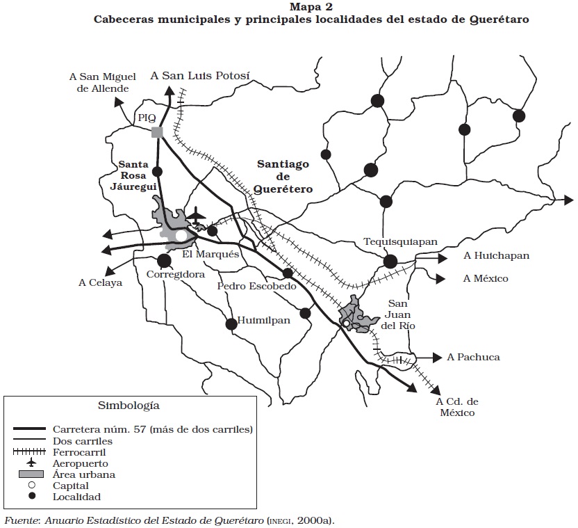 2 A mitad de la década de los ochenta, el corredor industrial Querétaro-San Juan del Río se define como una zona integrada económicamente; comprende las cabeceras de los municipios mencionados más los de Tequisquiapan, El Marqués, Pedro Escobedo y Corregidora. Dentro de la planeación federal, esta zona es considerada prioritaria para el desarrollo industrial (Garza, 1985).