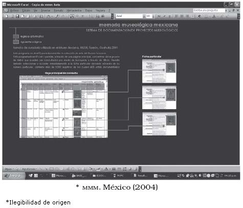 Una siguiente aplicación, aunque a una escala mucho menor, la encontramos en 2004 con la propuesta de creación de una nueva herramienta digital llamada Memoria Museológica Mexicana. Sistema de Documentación de Proyectos Museológicos (véase Witker, 2006). Otra vez, desde el enfoque de la sistematización de documentos, se propuso el diseño de un prototipo de programa que, por medio de diferentes formas y niveles de consulta, permitiera concentrar y, paralelamente, identificar en las fuentes originales cómo han sido construidos los museos en México en cuanto a estrategias y recursos, con particular énfasis en los últimos 20 años.