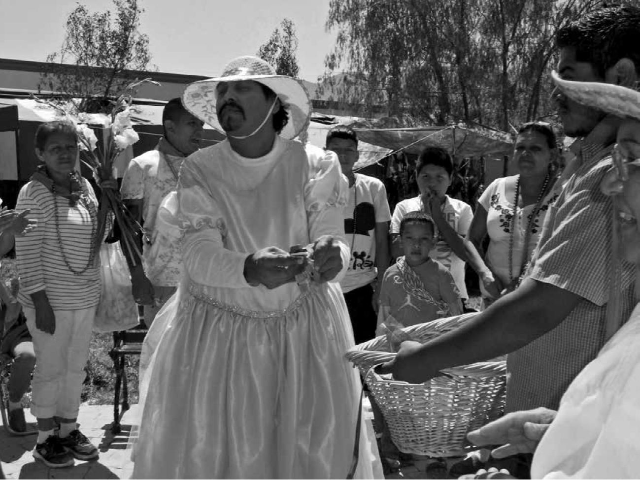 En el trabajo de campo fueron notables las variadas manifestaciones de amaneramiento y travestismo. Fidencio, por ejemplo, muchas veces es encarnado por mujeres. A la Niña Aurorita siempre la vi personificada por hombres, aunque sé que también la personifican mujeres. Pancho Villa, representante de una masculinidad norteña acentuada, es muchas veces encarnado por mujeres, mientras que la gitana Margarita lo es exclusivamente por homosexuales (Carrizales, 2018).