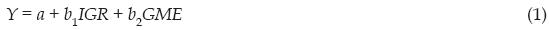Donde P es la probabilidad de abstenerse; 1 - P, la probabilidad de votar; IGR, el índice global de representatividad; GME, el grado de modernidad; β0, β1 y β2, los parámetros de la nueva ecuación. Cuando β1 y/o β2 son significativos (< .05) puede postularse que existe una relación entre la variable independiente y la dependiente. Si además son positivos, esa relación indica que cuando aumenta la representatividad o el grado de modernidad, aumenta la probabilidad de abstenerse; pero si son negativos, la representatividad o el grado de modernidad abaten esa probabilidad.