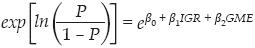 El modelo que hemos escogido consiste en estimar una ecuación logística multivariada que relaciona una variable dependiente dicotómica, "Y" (abstenerse o votar), con las dos variables explicativas que me interesan: la representatividad de la élite política (igr) y el grado de modernidad (gme):