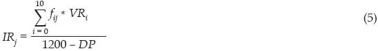 Donde IR es el índice de representatividad de la autoridad j-ésima; f las frecuencias o número de casos que asignaron la respuesta i-ésima a esa autoridad; VR, el valor de la respuesta z-ésima, y DP, los datos perdidos.