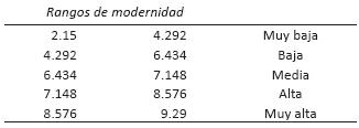 Índices de representatividad y del grado de modernidad: construcción de las variables