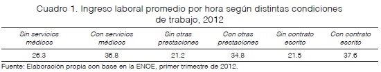 La precariedad laboral está asociada a ingresos bajos y, por lo tanto, es generadora de pobreza (cuadro 1). A ello se suma la inexistencia de seguridad social, y dicha combinación conduce a situaciones de vulnerabilidad. Una enfermedad puede significar una catástrofe económica dados los gastos en servicios privados de salud. Las personas tienen que deshacerse de sus pertenencias, vender sus activos productivos, empeñar objetos y/o contraer deudas de difícil cancelación. Los salarios de los mercados de trabajo mexicanos hacen que el concepto trabajador pobre ("the working poor") siga siendo útil para describir a estas mayorías que no pueden darse el lujo del desempleo, pero que no encuentran cabida en los sectores más protegidos de la estructura ocupacional.2