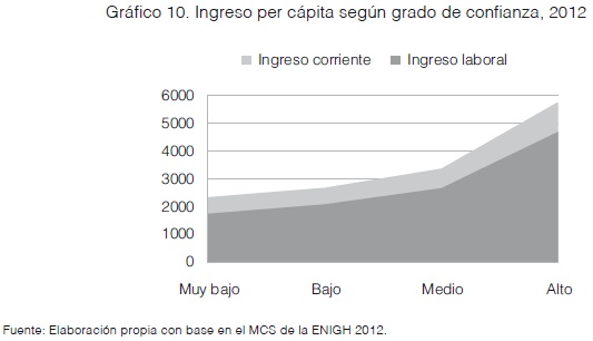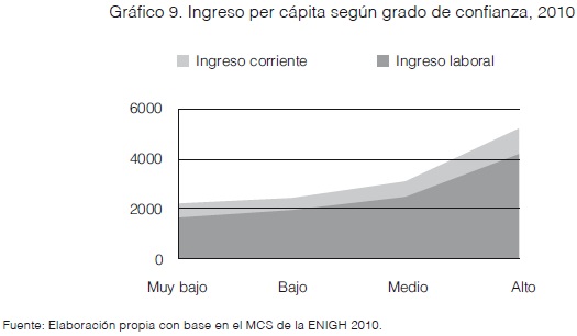 Nuestros hallazgos indican que las personas cuyos hogares registran mayores grados de confianza tienden a gozar de mejores condiciones laborales, no sólo en el número y tipo de prestaciones laborales sino, también, en el ingreso que obtienen de su empleo.