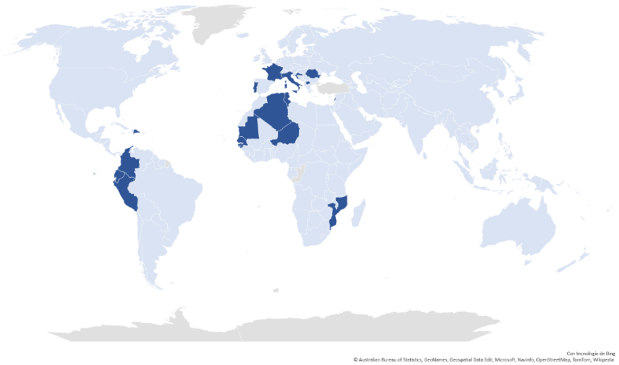 Pero lo que sí se ha convertido en una novedad, ya que muy pocos países lo han implementado, es el reconocimiento de representación en el legislativo para la población extraterritorial (Nohlen & Grotz, 2008; Palop-García, 2017). Según Wellman et al. (2022), a 2020 solo 19 casos habían reservado escaños para sus diásporas. En el mapa 2 se observan en azul los países con este mecanismo y en blanco los que no. Y en la tabla 1 se muestra el año de reconocimiento-reglamentación por país.