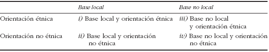 Con base en la tipología propuesta por Jones, Barrett y McEvoy,34 los empresarios étnicos pueden servir a sus miembros coétnicos (orientación interna o étnica), o bien al mercado general (orientación externa o no étnica). Asimismo, su base geográfica puede ser local, estrictamente en el ámbito del barrio, o bien no local, dirigido a un cliente genérico, sin constricción geográfica. Debe tenerse en cuenta que, en cualquier caso, se trata de tendencias y que en la mayoría de las situaciones concretas lo que predomina es una mezcla de las dos dimensiones: orientación étnica y no étnica, base local y no local. De la aplicación de esta tipología se desprende que, a diferencia del caso norteamericano, la mayoría de estos negocios tienen una orientación generalista o externa ya desde sus inicios. De acuerdo con M. Baganha y E. Reyneri,35 en el caso del sur de Europa no se forman enclaves cerrados en la sociedad receptora, ya que los clientes suelen ser externos a su comunidad. El cuadro 1 recoge la tipología y ofrece una primera clasificación de los comercios estudiados.