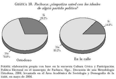 Al preguntar sobre la simpatía por los ideales de algún grupo político, de las personas entrevistadas con el método ortodoxo 29.2% dijeron que sí simpatizaban con algún partido político. Por otra parte, 70.8% manifestó no tener ninguna simpatía por algún grupo político ni sentirse identificado con algún ideal.