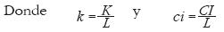 son los insumos capital privado y consumo intermedio por unidad de trabajo efectivo, respectivamente, f(k, ci) puede representarse como una función producción prototipo en forma intensiva semejante a la CobbDouglas en sus argumentos.27