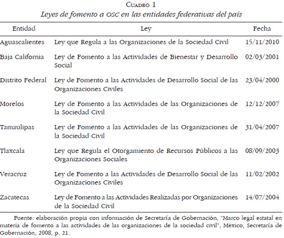 9 Registro Federal de las Organizaciones de la Sociedad Civil (RFOSC) [www.corresponsabilidad.gob.mx/recursos/pdf/cUADRO%201.pdf], fecha de consulta: 14 de agosto de 2012. [ Links ]