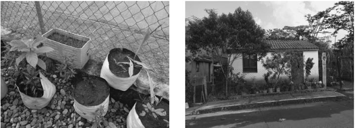 La construcción de la cocina en la parte trasera de la vivienda permite que tenga una ubicación estratégica porque hay un contacto visual con los vecinos y las demás cocinas, además de controlar visualmente todo el espacio y la entrada que comunica la calle con la vivienda. Alrededor de ésta se pueden encontrar algunas plantas ornamentales, aromáticas, medicinales y árboles frutales como papayo, cocotero, guayabo, rambután, limón, etcétera, muchos sembrados en semilleros, materas, bolsas y estructuras adecuadas rellenas de tierra, pues afirman que la tierra del solar tiene mucha laja.