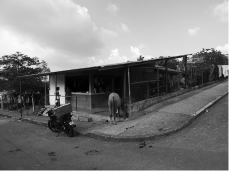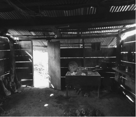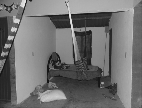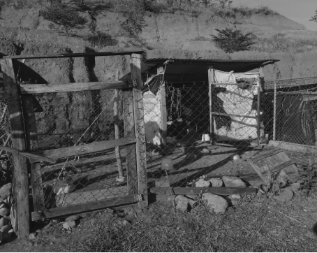 Nos dieron una casa pero pues no es digna para una familia. Ahorita la ve así, pero le tuvieron que poner algunas cosas porque la gente lo pidió. Porque el agua y el sol pasaban de largo al lado; aquí lo único cerrado que hay son los dos cuartos nada más. Todo afuera, todo dejaron, cocina, batea, todo afuera, sino que no más ahí un fogón que le pusieron; haga de cuenta como ese espacio ahí pusieron un fogón igual allá y eso nada más que dejaron ahí para que nosotros cocináramos, pero pues leña dónde agarramos leña si no hay. Tenemos, pues, como le decía ayer, somos, este, personas que quedamos lejísimos de nuestro poco terreno que uno tiene; quedó lejísimos entonces ¿cómo hacerle?, entonces se ve difícil. 23
