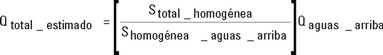 Una primera etapa comprendió el análisis de los caudales influentes al embalse. La información de las estaciones hidrométricas que se utilizaron en el estudio (La Y, Las Trojes y Calixtlahuaca) (Fig. 1) registran sólo parcialmente los caudales de las subcuencas que contribuyen directamente al volumen de agua que llega al embalse. Además de éstas existe un área de drenaje perteneciente a la cuenca que no cuenta con estaciones de aforo. Por tal razón, teniendo en consideración las características fisiográficas y el régimen pluviométrico de la zonas no aforadas, se procedió a la estimación de los caudales sin registro hidrométrico por la técnica de ponderación hidrológica de regiones homogéneas, que consiste en incrementar el valor del caudal registrado, en una o más estaciones de aforo, aguas arriba del punto donde se desea estimar el valor de caudal utilizando la proporción de superficies drenadas. Es decir, se multiplica el resultado de la relación de superficies hidrológicamente homogéneas por el valor del caudal registrado aguas arriba, tal como se muestra en la siguiente ecuación: