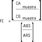 FE: Factor de enriquecimiento del elemento analizado (adimensional)