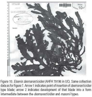 Conspecifity of Eisenia desmarestioides and E. masonii (Laminariales, Phaeophyceae) from Isla Guadalupe, Baja California, Mexico. 2008, vol. 18 (2):167171.