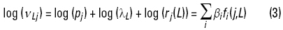 Con los supuestos anteriores es posible construir un modelo Log-lineal para la estimación de los parámetros de una curva de selectividad, de la siguiente manera. Sea vLj = pjλLrj (L), el valor esperado del número de peces de talla L, capturados por el j-ési-mo tamaño de luz de malla. Si se obtienen logaritmos en ambos lados de la expresión, el modelo queda de la siguiente forma: