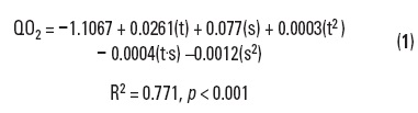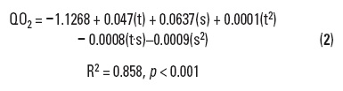 QO2 (µl O2 mg-1 h-1) = -a + b(t) + c(s) + d(t2) - e(t.s) - f(s2)