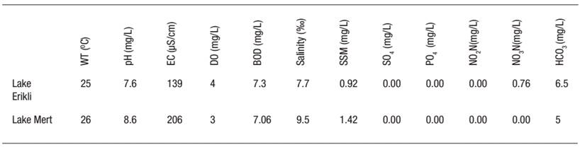Table 2 The average values for physico-chemical features of the lakes Mert and Erikli (Igneada Longoz, Turkey) on sampled dry and wet seasons.