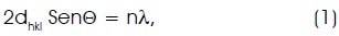 Donde: dhkl indica los planos de difracción de Bragg, O es el ángulo de difracción, n es un entero y X es la longitud de onda de los rayos X. El valor del parámetro de red experimental: A = 0.8086 nm, el cual concuerda con el valor reportado teórico: