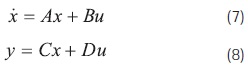 On the other hand, the transfer function analysis is a mathematical approach to relate the system response and an input signal (or excitation). The ratio formed by the pattern of the output over the signal by input makes it possible find the zeros and poles, respectively. That is, it represents the boundary region that must not be reached either by the system response or by the excitation signal, at the same time12. A state-space representation is a mathematical model of a physical system described by a set of inputs, outputs and state variables related by first order differential equations that are combined in a matrix differential equation of first order. To ignore the number ofinputs,outputs and states, the variables are expressed as vectors, and algebraic equations are written in matrix form. The transfer function of a state space model and continuous time-invariant can be obtained as follows: Taking the Laplace transform