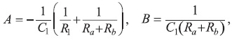is called the state vector, y is the output vector and u is a vector of inputs (or control). A is the matrix of states, B is the input matrix, x is a column vector representing the voltage onthecapacitor, C is the matrix output (voltage on the capacitor that models the dermis), C1 = 1 and D are the feedforward matrix, for this model D=0. The values of the parameters of the circuit in Figure 2, correspond to Ra = Rb=0.2, C1 = 0.2 and R1 = 0.4.