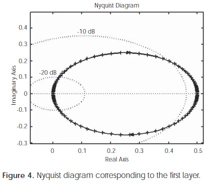 Figures 3, 4 and 5 shows the graphs corresponding to the Bode, Nyquist and Nichols plots. The circuit corresponding to the first layer is shown in Figure 1. The transfer function of the first layer is