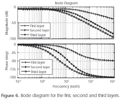 Figures 6, 7 and 8 shows the Bode, Nyquist and Nichols diagrams corresponding to the second and third layer, respectively.