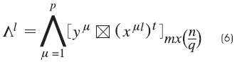 Paso 1. Para cada μ = 1, 2,..., p, a partir de la pareja (xμ,yμ) se construye la matriz: [xμ ⊗(yμ)t]mxn, donde m y n son la dimensión de los vectores x y y, respectivamente.