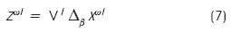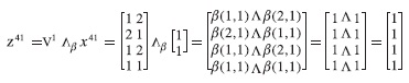 Ahora, para cada una de las q matrices y particiones del vector, se realiza la fase de recuperación del algoritmo de las memorias heteroasociativas alfa-beta tipo máx con la operación Δβ (ecuación (7)) y si la memoria es tipo mín se realiza con la operación ∇β como lo muestra la ecuación (8). Cualquiera de los dos resultados se asigna al vector zωl.