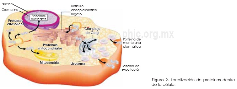 Las proteínas1 son las moléculas trabajadoras de una célula y llevan el programa de actividades, las cuales están codificadas por los genes. Dado que la estructura y función de una célula está determinada por las proteínas que contiene, el control de la expresión genética es un aspecto fundamental de la biología molecular de la célula. Las proteínas se pueden dividir en tres clases: globulares, fibrilares y de membrana. Comprender la función de las células requiere no sólo de la identificación de las proteínas expresadas en un tipo de célula dada, sino también de la caracterización de la localización de esas proteínas dentro de la célula.