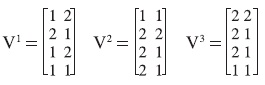 A partir de las parejas (Xμl, yμ), con μ = 1, ..., p y l = 1,..., q, se construyen las q matrices según la fase de aprendizaje. Por conveniencia, se construirá memoria asociativa máx, para el primer subconjunto de aprendizaje, {(x11, y1), (x21, y2), (x31, y3), (x41, y4)}: