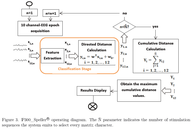 Figure 4 shows a diagram of the proposed methodology, observe that in order to select each matrix symbol the system must determine the number of stimulation sequences required; if it cannot make a decision based on the found evidence it will present a maximum of N.