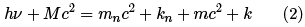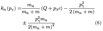 From the above equations, and after some algebra, yields an expression for the kinetic energy of the photoneutron, as a function of incident photon momentum, given by