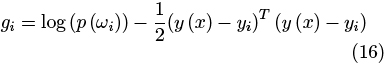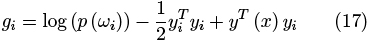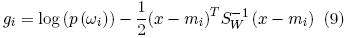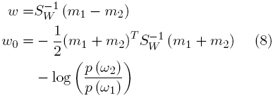 Donde mi es la media de la clase i, SW es la sumatoria de las covarianzas intra-clases, y p(ωi) corresponde a la probabilidad a priori de cada clase [23].