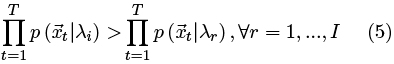 La ecuación (6) es usada en el proceso comparativo, en el cual la señal de entrada se asocia al modelo acústico de nuestro diccionario que arroje la mayor verosimilitud.