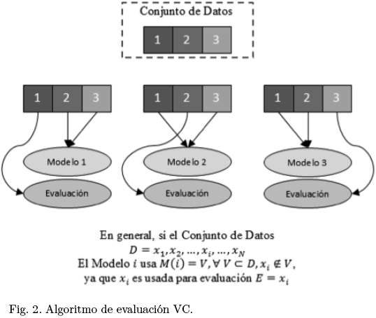El enfoque utilizado para el particionamiento de la base de datos, y la posterior evaluación del sistema, fue la Validación Cruzada, el cual fue implementado con el objetivo de probar el sistema con señales diferentes (tanto para experimentos de GMM, como de LDA). Estás señales fueron aplicadas en la etapa de aprendizaje (i.e., conjunto de entrenamiento), para poder obtener un punto de vista objetivo de la eficiencia del sistema. El procedimiento, en particular utilizado en este trabajo, fue Validación Cruzada por K-fold (aplicado para cada clase); el concepto básico es dividir los datos en K particiones de igual tamaño (una señal por partición). Una partición es reservada para las pruebas, y el resto de los datos son usados para ajustar el modelo. Este procedimiento es repetido hasta que las K particiones han sido usadas como conjunto de prueba; esta es la razón por la que en la figura 2, la señal i fue reservada para prueba.