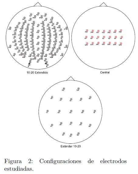 Como se puede observar en la tabla 1 los montajes 10-20 extendido y central tienen los mejores índices de clasificación, sin embargo la configuración central tiene sólo 21 electrodos, casi 100 electrodos menos que la configuración 10-20 extendida.
