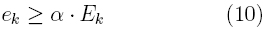 Se debe notar de la expresión (9) que el valor esperado también es dependiente del intervalo k adquirido. Dado que existe cierta probabilidad de que no hayan ocurrido distorsiones eventuales cuando ek > Ek, se introduce, entonces, el parámetro α para controlar dicha probabilidad y la intensidad de la distorsión eventual que no se detecta, y se dirá entonces, que habrán ocurrido distorsiones eventuales sí y sólo sí: