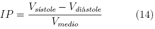 donde: Vsístole es el valor sistólico máximo Vdiástole es el valor diastólico mínimo y Vmedio es el valor medio en el intervalo bajo análisis.