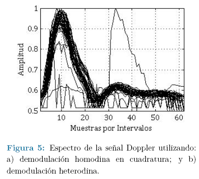 Las señales ultrasónicas, utilizadas como señales interrogantes para el diagnóstico de vasos sanguíneos, son susceptibles a la presencia de diversas fuentes de ruido que originan distorsiones que interfieren con la señal de interés y que ocultan, total o parcialmente, la información clínicamente útil contenida en ella [1]. Durante la caracterización de los vasos sanguíneos, utilizados como implantes coronarios (o bypass), en los procedimientos de revascularización coronaria, se emplean técnicas basadas en ultrasonido Doppler que constituyen una herramienta para diagnosticar, cuantitativa y cualitativamente, el estado del implante y validar la calidad de la intervención quirúrgica [2].