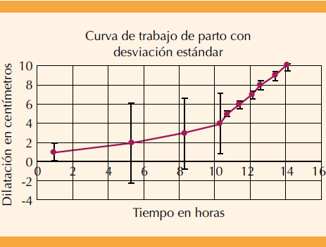 En 1955 Friedman publicó su estudio clásico acerca del análisis gráfico estadístico de la progresión del trabajo de parto en pacientes con embarazo de término. En el primer estadio del trabajo de parto estableció la descripción de una fase latente, caracterizada por borramiento y dilatación cervical hasta los 4 cm; seguida de una fase activa con dos partes claramente diferenciadas: la primera descrita por un periodo de dilatación de rápida progresión (fase de aceleración), y la segunda por un en lentecí miento de la dilatación hacia los 9-10 cm (fase de desaceleración), antes del inicio del segundo estadio o periodo expulsivo. La relación entre la duración del trabajo de parto y la dilatación cervical se expresó mediante una curva sigmoide (Figura 1), que ha sido universalmente aceptada para el seguimiento y vigilancia del primer estadio del trabajo de parto.1-4 En México, un grupo de investigadores encabezados por Manuel Villalobos Román, describió, en 1978, una curva de trabajo de parto en un grupo de pacientes primigestas atendidas en el Hospital de Ginecoobstetricia 1 -A del Instituto Mexicano del Seguro Social. Ese estudio reportó que la curva de trabajo de parto tiene una forma lineal con pendiente ascendente y que, a partir de los 5 cm de dilatación, se acelera el trabajo de parto.5