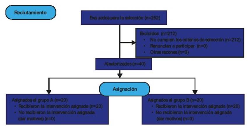 Figura 1 Diagrama de flujo del progreso a través de las fases del ensayo clínico aleatorizado paralelo de dos grupos (reclutamiento, asignación de la intervención, seguimiento y análisis).