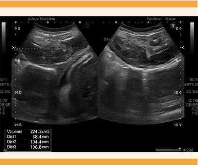 A la exploración física se observaron los genitales externos normales, con flujo vaginal normal. La prueba de Bishop para dilatación cervical fue de 1. La altura del fondo uterino era acorde con la fecha de la última menstruación y el útero tenía un tono uterino normal. Se quejó de dolor superficial en el hipocondrio derecho. La exploración del resto de la pared abdominal se reportó normal, y sin delimitar masas.