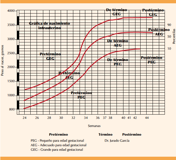 Copiada de: Jurado-García E. El crecimiento intrauterino. Gaceta Medica de México. 1971; 102 (2): 227-255.