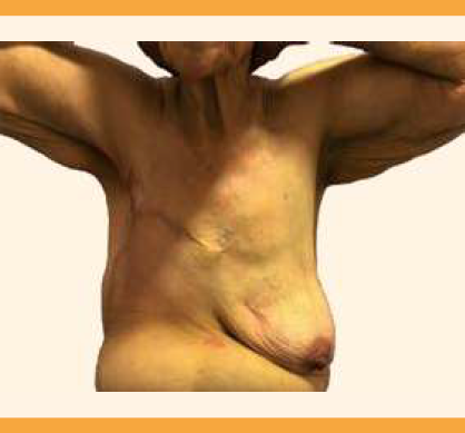 Figura 1 Paciente de 61 años, con tumor filodes maligno al momento del diagnóstico, llevada a radioterapia. Hospital de San José, septiembre de 2017. Vista frontal.