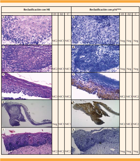 | Reclasificación con hematoxilina eosina con reclasificación con p16 como patrón de referencia |