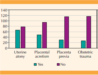 Obstetric hemorrhage is one of the leading causes of maternal death in Mexico and one of the main admissions to the obstetric intensive care unit (ICU). The prevalence of ICU admissions for obstetric hemorrhage in the present study was 32.6% and for severe major obstetric hemorrhage was 76.6%, in contrast to a study conducted at the Hospital General de Mexico with reported prevalences of 15% (n = 44, n = 287). 12