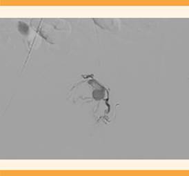 Figura 4 Embolización selectiva de la arteria aferente a dilatación aneurismática.